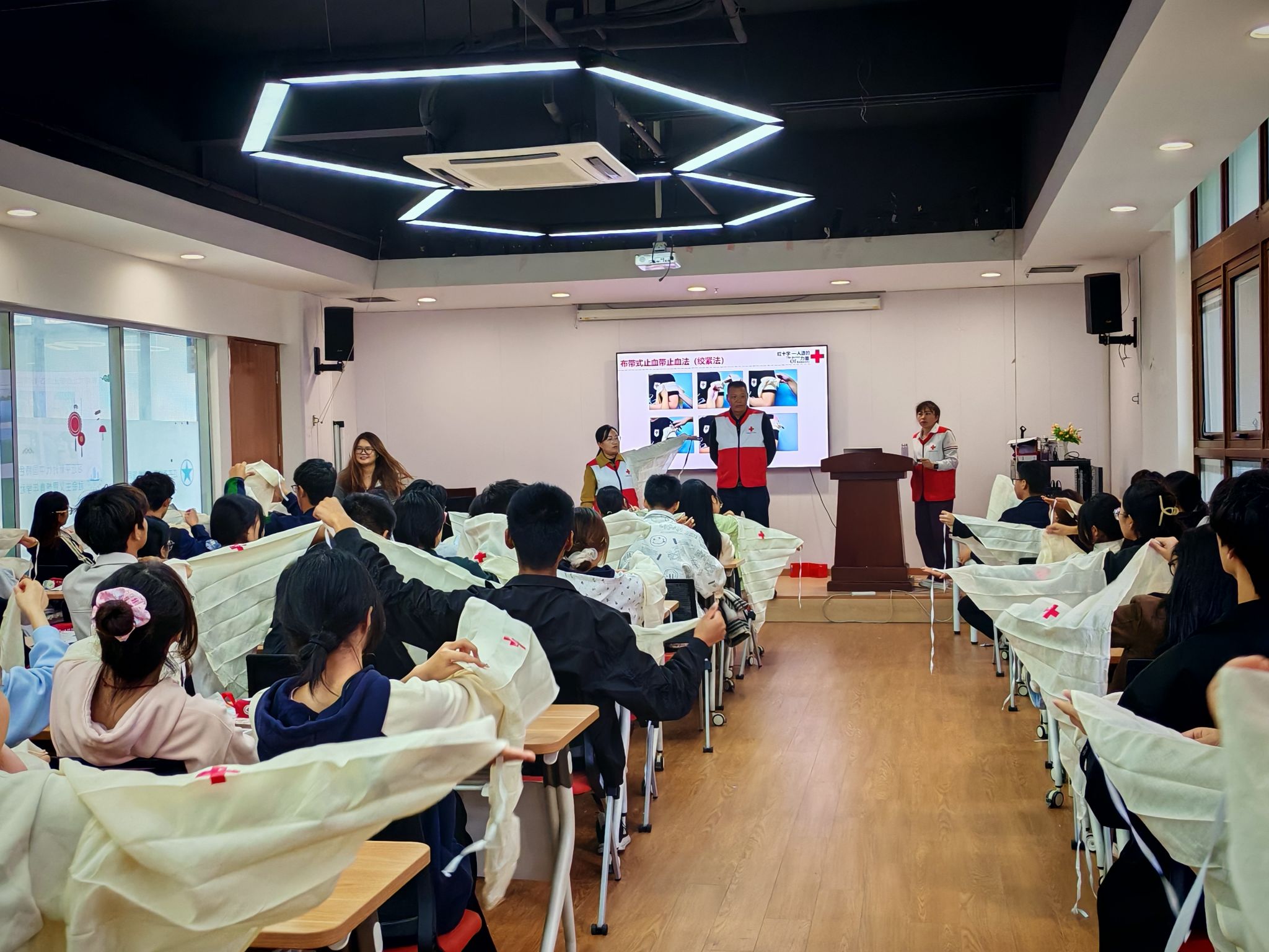 此次校园应急救护培训践行了“人人学急救,急救为人人”的理念,践行和弘扬了红十字精神,储备了校园应急救护力量,为构建安全校园助力添彩。