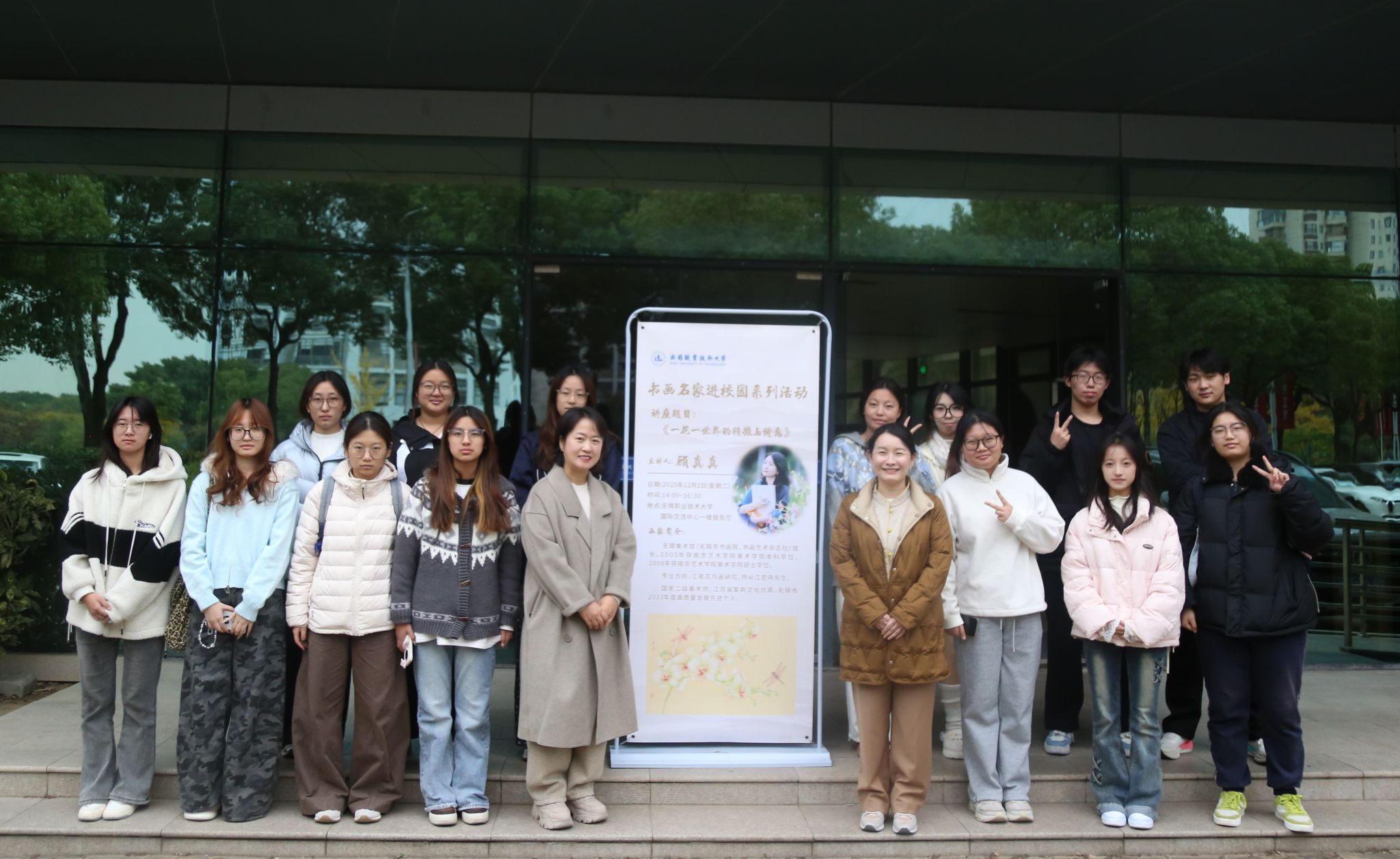 12月2日,校团委在国教一楼报告厅举办了“书画名家进校园”系列活动,特邀无锡美术馆馆长顾真真来校作《一花一世界的精微与诗意》工笔花鸟画艺术讲座。校团委书记郑月圆、蠡溪画社指导教师曹亮和三百余名师生绘画爱好者参加了本次活动。