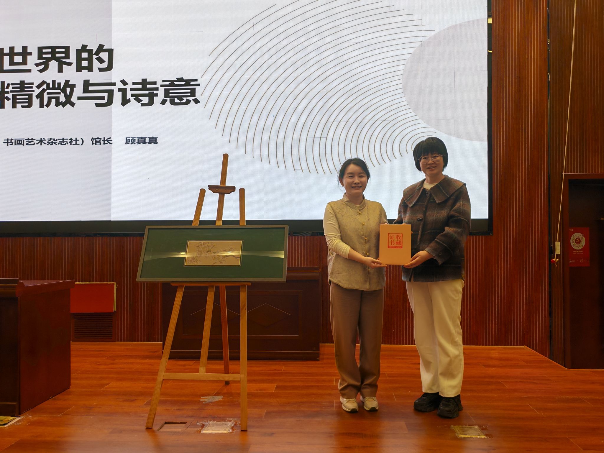 活动最后,顾馆长为我校捐赠了国画作品《繁艳芬馥》,校团委书记郑月圆为顾真真馆长颁发了收藏证书和社团特聘导师的聘书,活动圆满结束。