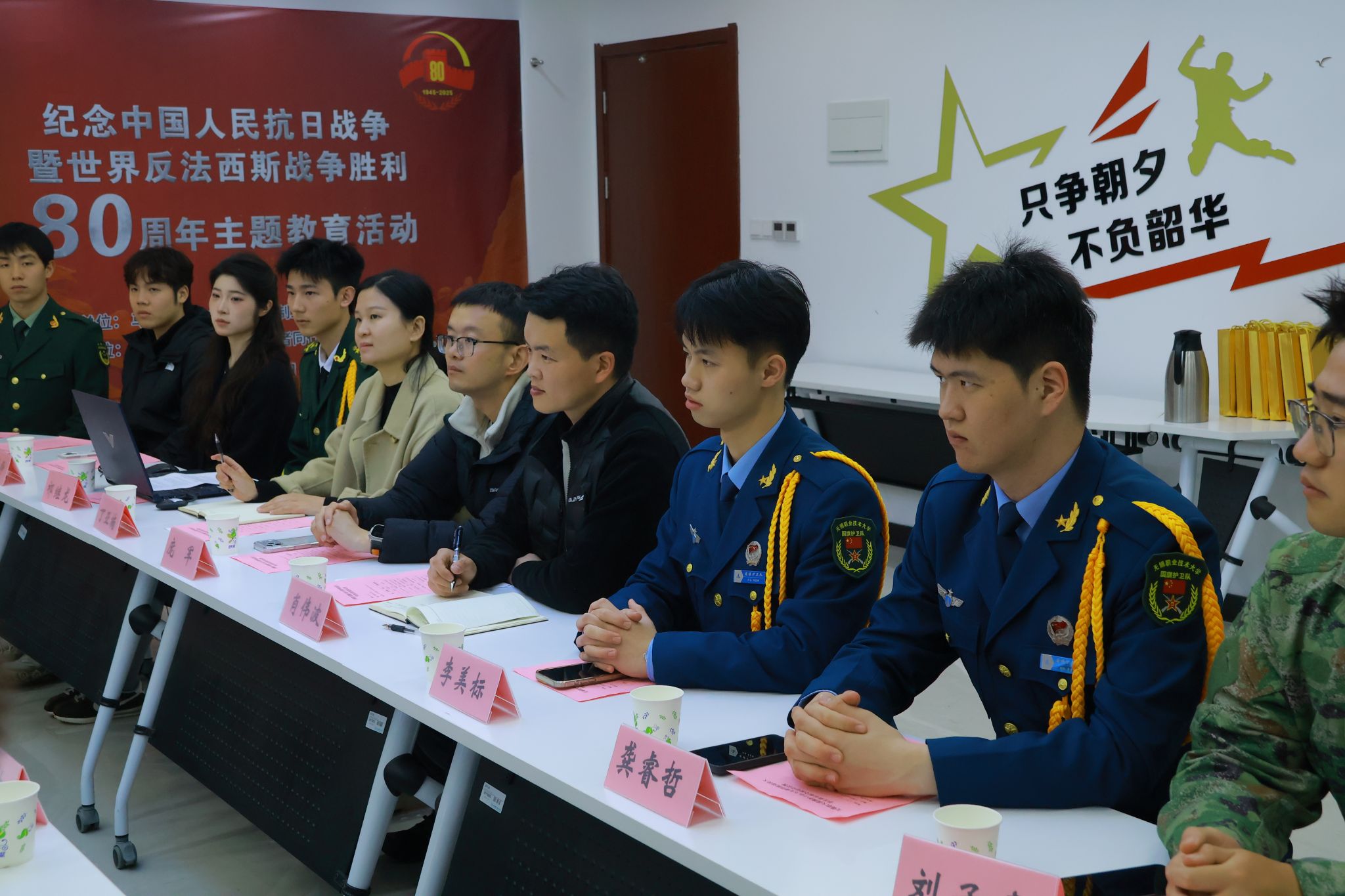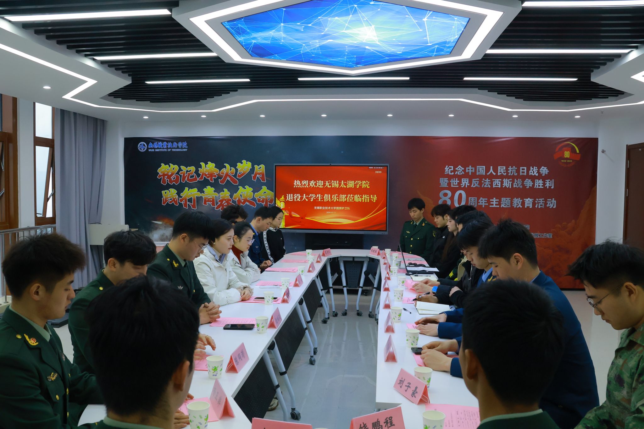 3月17日,太湖学院退役大学生俱乐部在张论老师的带领下赴我校与国旗护卫队开展交流活动,校团委副书记庞军及国旗护卫队师生代表出席活动。