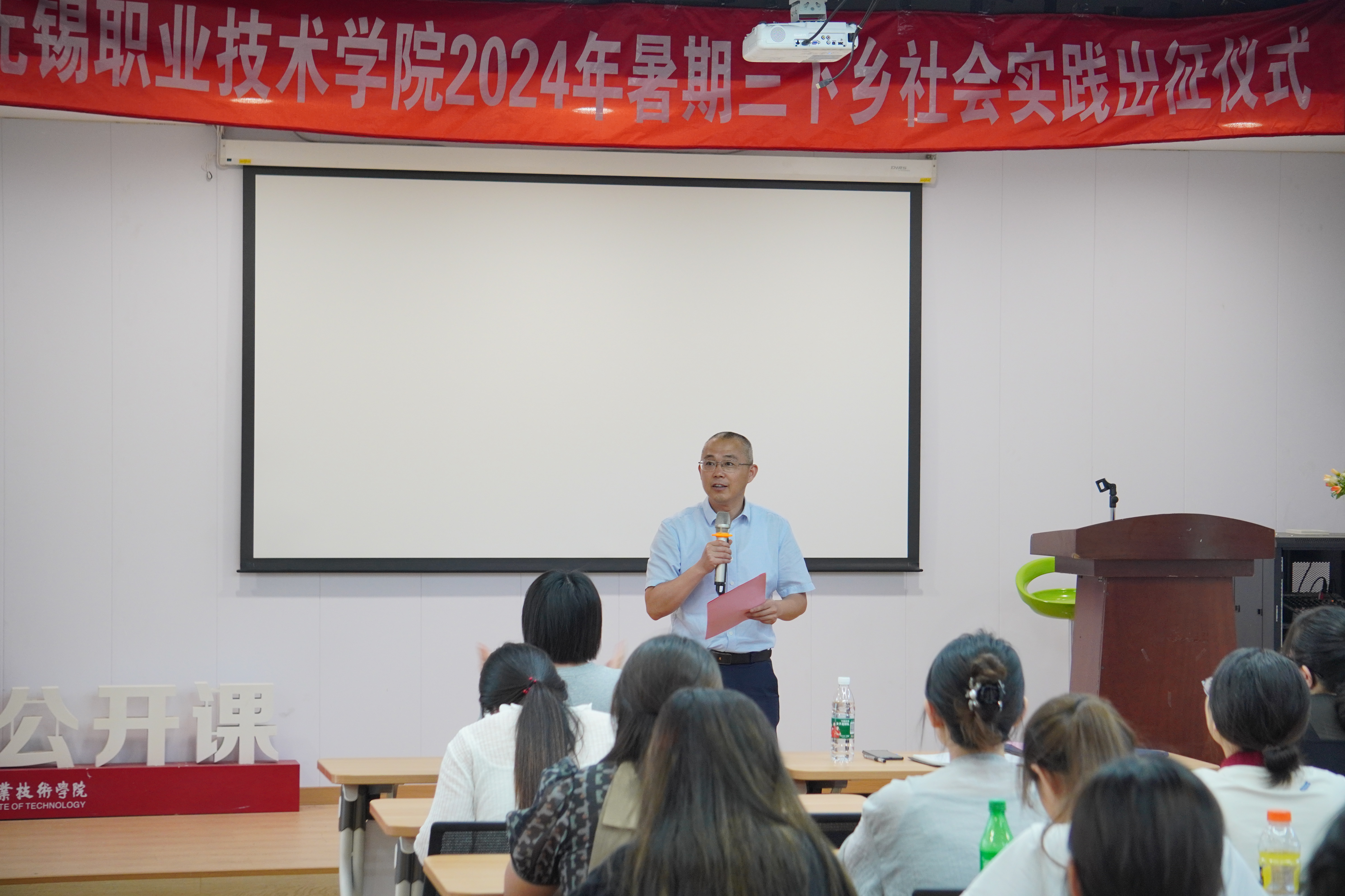 7月4日,校团委在青智库举行无锡职业技术学院2024年大学生暑期“三下乡”社会实践活动出征仪式。校党委委员、副校长强伟纲、校团委书记郑月圆级重点立项团队指导老师及团队代表80余人参加了出征仪式。