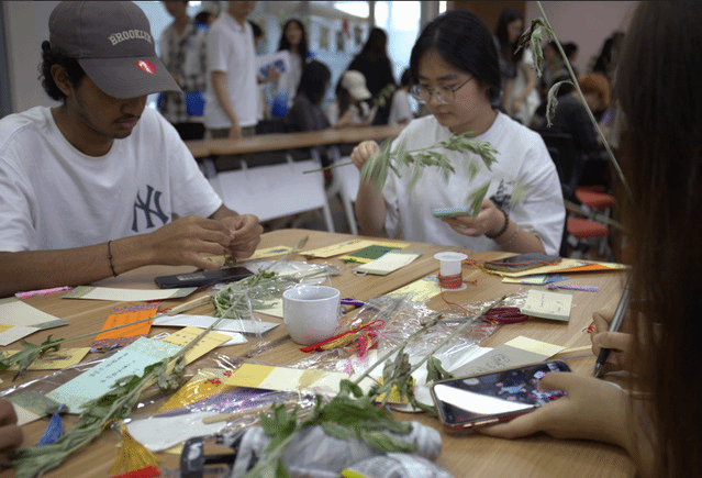 活动现场,同学们学习了中国传统节日端午节的起源,习俗。在端午猜字谜环节,同学们积极参与,竞相猜谜,气氛热烈,同学们不仅加深了对端午节习俗和文化内涵的了解,也感受到了中华传统文化的博大精深;在传统漆扇制作环节和插五端环节,来自全校各院系的同学们和国际教育学院的留学生们分组制作,在亲身体验中感受到中华传统文化的魅力。