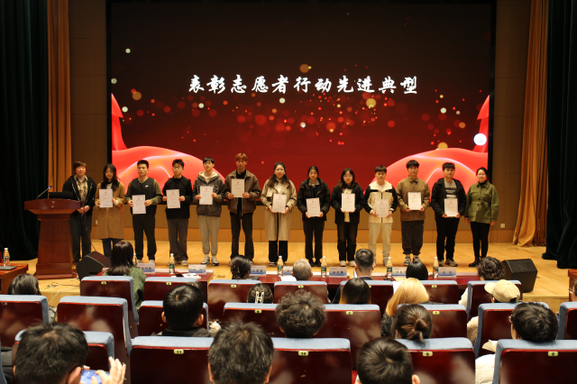 活动现场表彰了2023年度学校优秀志愿者,优秀志愿服务项目和优秀志愿组织;财经学院郑文彧老师和向日葵义工站李沛泽同学做了交流发言;学校团委与无锡地铁集团,无锡市人民医院,无锡市残联,江苏省击剑协会进行志愿服务共建签约;活动最后,强伟纲副校长发表讲话,他对各共建单位给我校学生提供宝贵的社会实践和志愿服务平台表示感谢,并对学校提升志愿服务工作水平提出三点要求:一是要学深志愿服务精神,强化思想引领;二是要落实志愿服务行动,践行挺膺担当;三是要丰富平台载体,树立榜样示范。