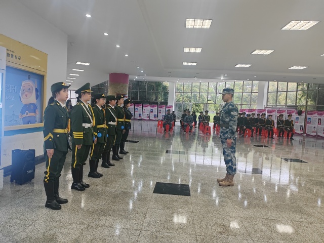 随后进行了队列技能比拼,分团体赛和个人赛两个赛项,共有7支团队选手和12名个人选手参赛。选手们开展了立正、稍息、跨立、停止间转法、齐步行进与立定、正步行进与立定、脱帽戴帽、蹲下起立、敬礼礼毕等9个科目的现场展示。大家着装统一、口号嘹亮、队列整齐、团队配合有序,展现了日常训练的过硬技能和现场竞技和沉稳心理素质。