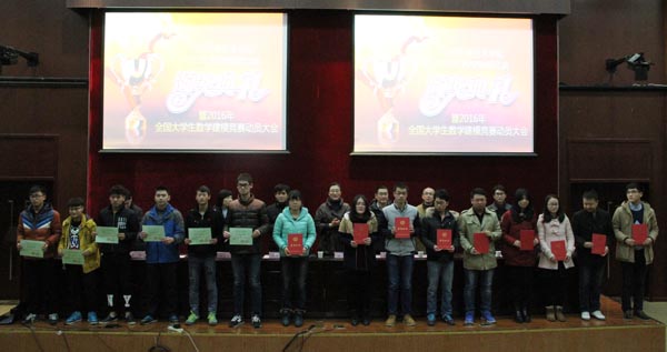 1月5日下午,我校2015年全国大学生数学建模竞赛颁奖典礼暨2016年动员大会在国际交流中心一楼报告厅举行,顾京副校长,教务处、高职本科部、学生处、基础部、校团等相关部门负责人及获奖师生代表等300余人到场。