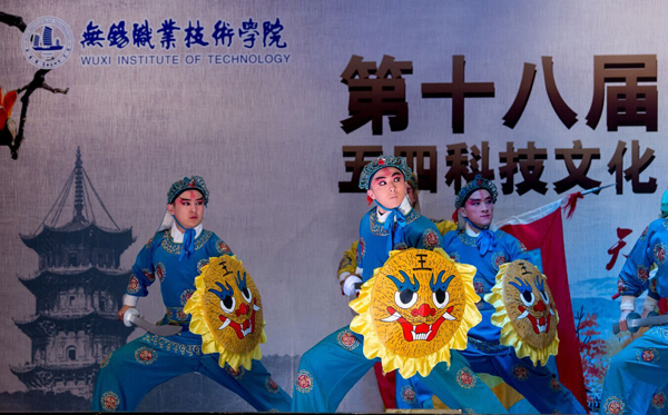 4月14日晚7时,由校团委、艺术与设计学院公共艺术教育中心联合主办的第十八届五四科技文化艺术节开幕式暨2015高雅艺术进校园京剧名家名段赏析会在我校体育馆二楼隆重举行,来自江苏省京剧院的艺术家们为我校师生倾情奉献了一场视听盛宴。校领导朱爱胜、谈向群、华坚,部分院部总支书记及京剧爱好者等近千名师生参加了开幕式并观看演出。