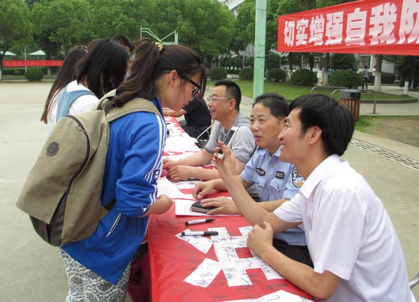 活动现场,同学们还纷纷就自身遇到的各种新型诈骗手段、各类防范技巧及措施向民警和老师咨询;宣传活动现场近千名学生在宣传横幅上签名,发放防骗宣传资料1500余份。
