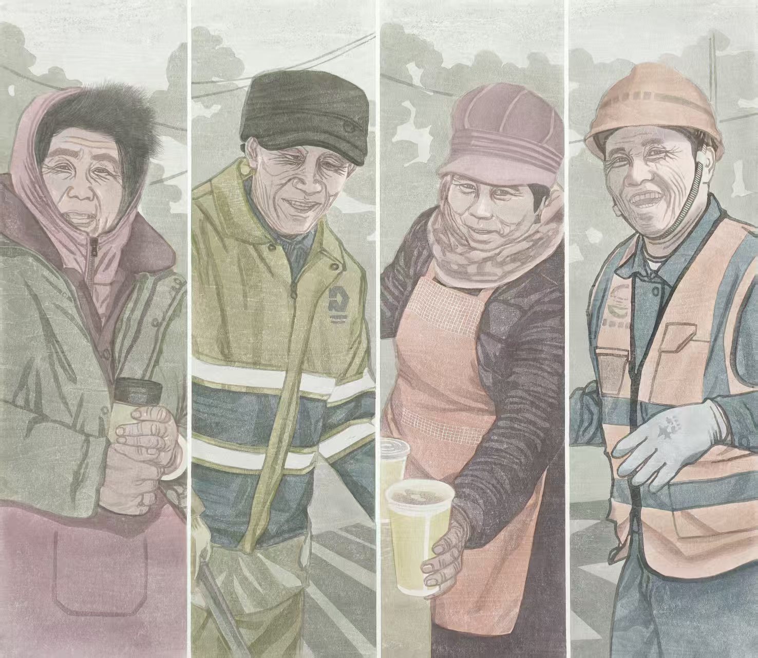 版画作品《城市暖阳》