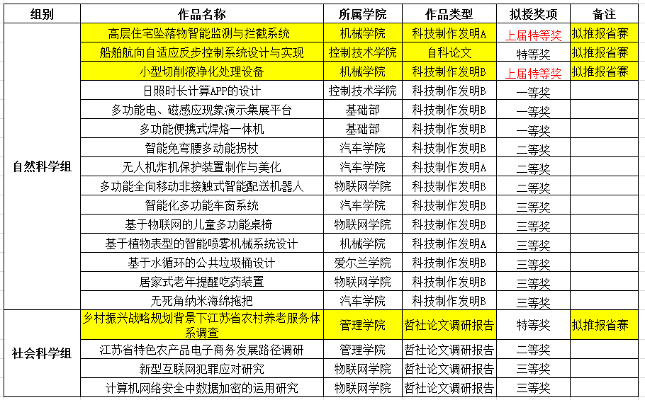 2021年无锡职业技术学院“挑战杯”决赛结果及江苏省赛推报情况公示